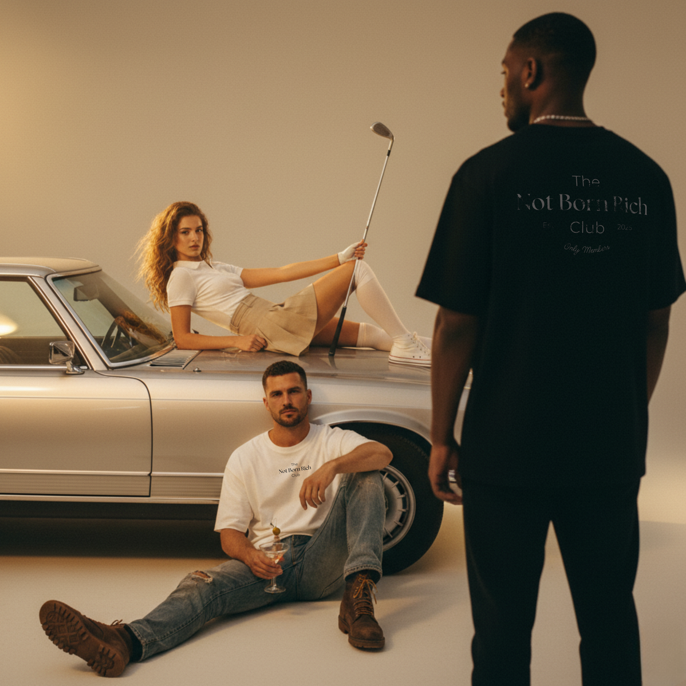 Representamos a quienes empezaron desde abajo y nunca dejaron de mirar hacia arriba. A los que aún están construyendo su sueño, paso a paso. Vestir Not Born Rich es una declaración de orgullo y carácter: una prueba de que nada te fue regalado. Lo ganaste con esfuerzo, ambición y visión. Porque creemos en una sola verdad — la clase no se hereda, se construye.